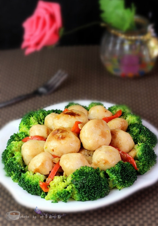 12:盛入装西兰花的盘子里,团团圆圆的一道美味菜做好了