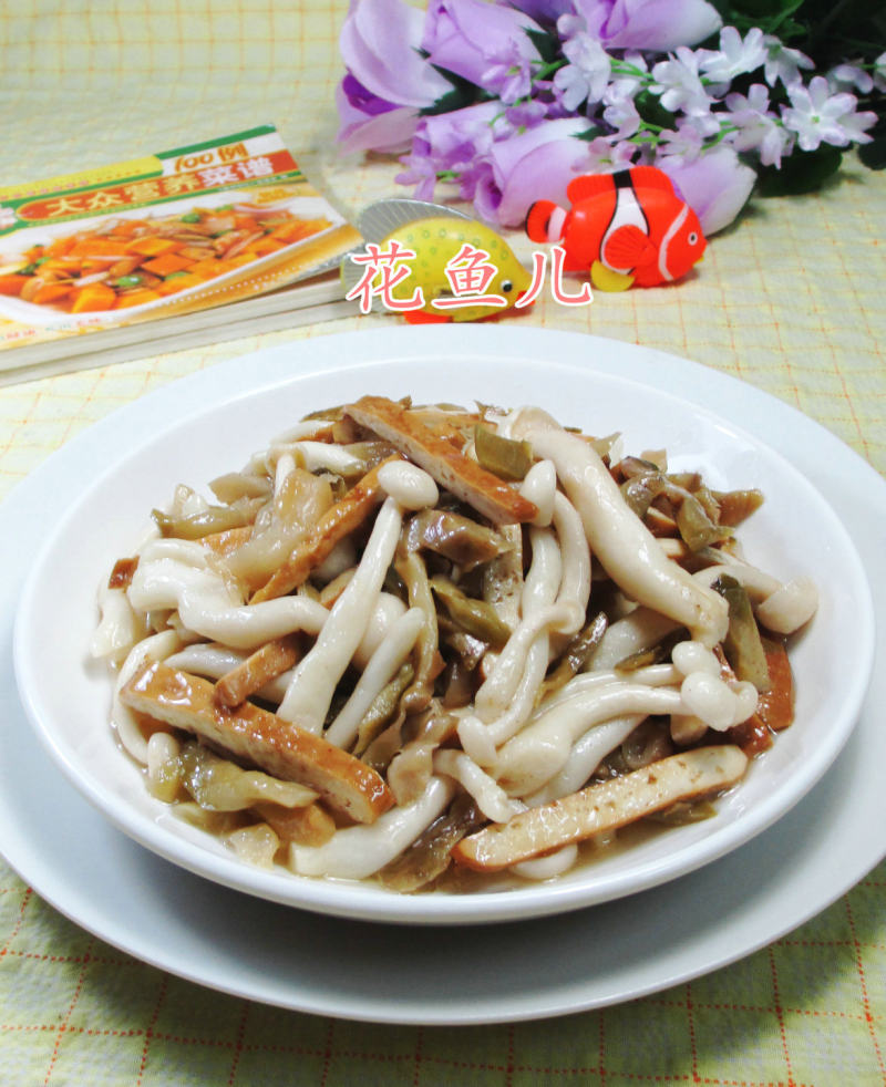 榨菜丝香干炒白玉菇