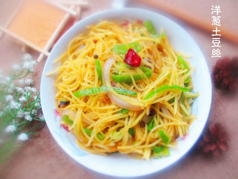 1:土豆去皮切1CMM粗细的条,洗去表面淀粉;洋葱剥去外皮,切粗丝,洗净。