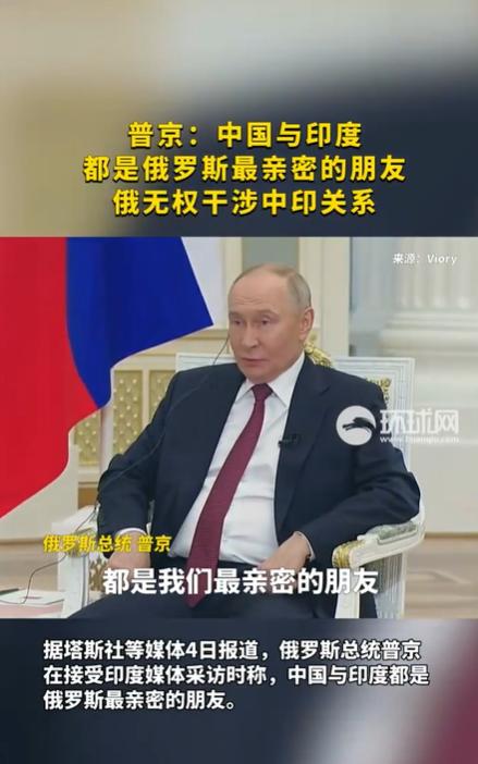 俄罗斯总统普京在日前举行的瓦尔代国际辩论俱乐部年会上作出重要表态,强调每个主权国家都有权自主选择发展道路。当被问及对当前中印关系的看法时,普京明确表示:"俄罗斯尊重各国自主决定外交政策的权利,中印作为重要邻邦,其双边关系应当由两国自主协商解决。"
