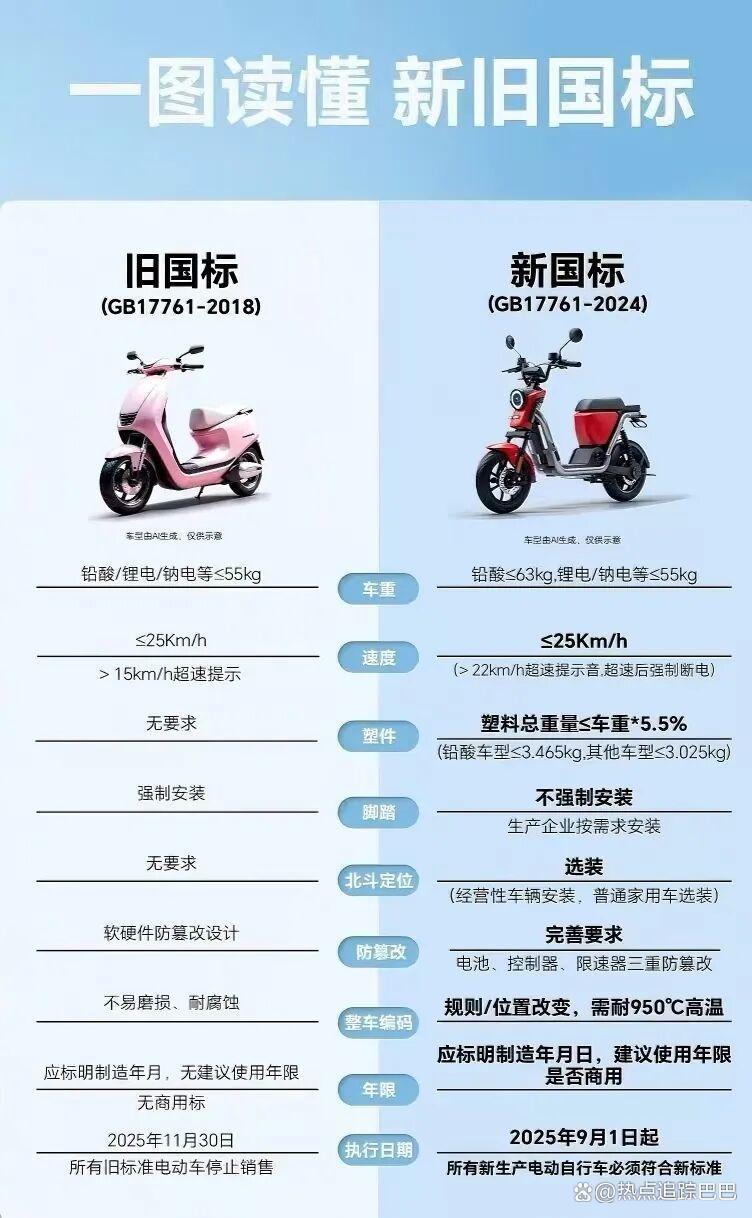 综合来看,新国标电动自行车的变化主要体现在以下几个方面: