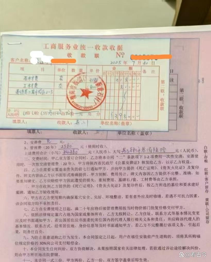 当时张家兄妹合计着,姐姐年过七旬,哥哥重病在身,为了让这份手足情在地下也能"贴贴",特意在临渭区龙寿山生态公墓孝德苑特区,斥资近7万元买了俩"风水宝地"。每个墓位单价34360元,包含石材、刻字和20年服务费,这价格在当地算得上是"顶配套餐"。工作人员拍着胸脯保证:"您放心,这俩位置绝对挨着,到时候姐弟俩还能继续唠嗑。"