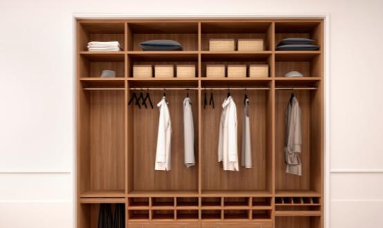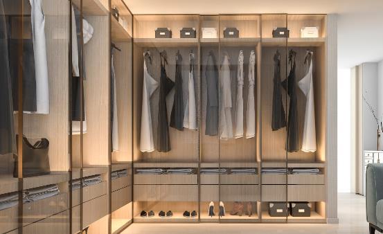 柜体一般由板材搭建,是衣柜的主要组成材料,它的好坏直接决定了衣柜的使用寿命。市场上整体衣柜的板材主要是人造板,实木板由于其价格昂贵等原因采用较少。柜体占据着衣柜的绝大部分面积,日常注意保持表面的洁净,有灰尘时,应使用毛掸或软布除尘。