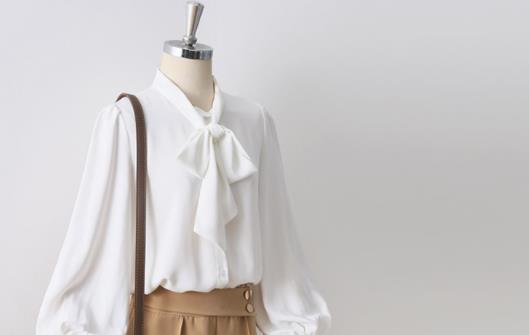 2、在衬衣侧身打结,打蝴蝶结时可以打在腰部稍微高一点的地方,这样可以提高腰身,显得比例更加高挑,给人一种优雅大气,女人味十足的感觉。