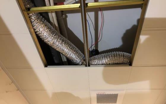 4、扣板上面的水管没有安装牢固出现了漏水的现象,可以将部分扣板拿下,进行维修安装。