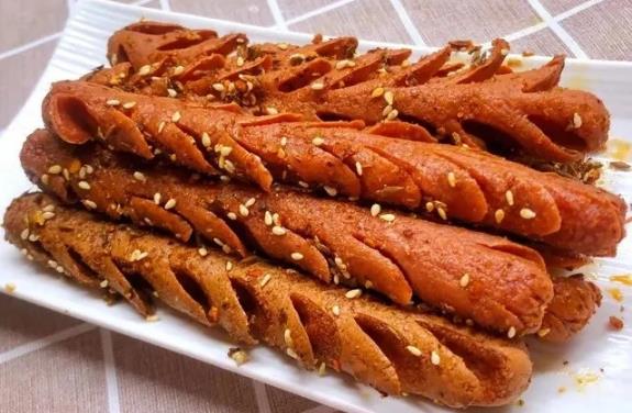 淀粉肠是比较常见的一个街边小吃,它的外皮酥酥脆脆的,里面吃起来面面粉粉的,味道很不错,深受年轻人喜欢。根据信息显示,淀粉肠里面有肉,但是用量很少,并且大多都是鸡骨泥,经常吃不是很健康。