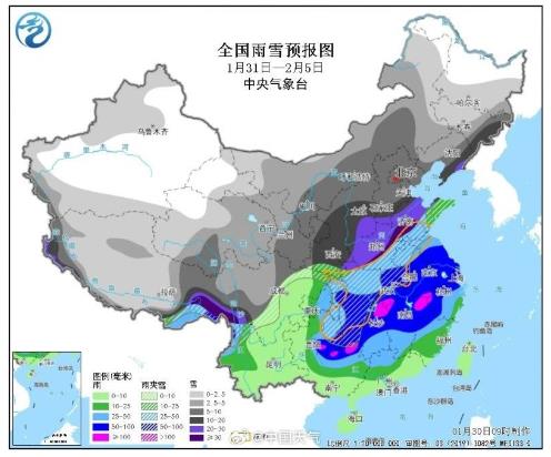 预计1月31日至2月5日,我国中东部地区将进入入冬以来持续时间最长、影响范围最广的雨雪冰冻天气过程。10省份将出现暴雪或大暴雪,河南、河北、山东、辽宁、湖北等地的日降水量或累计降雪量具有极端性,河南、湖北、安徽、湖南、贵州5省将出现冻雨。