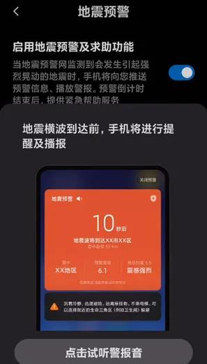 小米:手机管家→家人关怀→地震预警,或设置→安全-MIUI预警中心→地震预警。