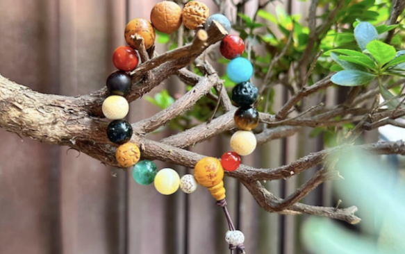最后,佩戴手串时应尽量避免碰撞或摔落。因为18颗籽粒手串簇拥而成,手串颠簸时很容易脱落所以需要小心佩戴。