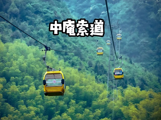 具体的缆车路线是:一级索道上行停靠紫极宫(中庵),然后步行福星谷木栈道(20分钟左右)才能抵达二级索道站。再乘坐二级索道直达草甸,再步行15分钟就抵达最高峰金顶。
