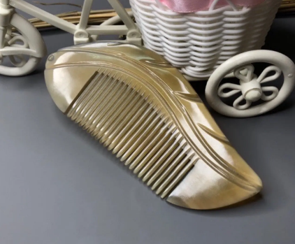 真的牛角梳有一股角质的味道,对着牛角梳呵一口气,或是用手指蘸水在牛角梳上来回摩擦,或产生牛角类特有的腥臭味。